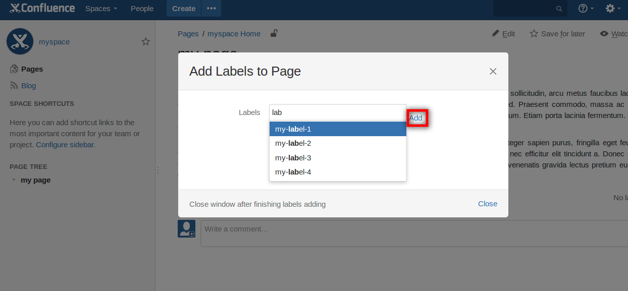 From now, users will be restricted when they try to add a label. They must type to search, and select in dropdow list for labels that matches the searched word. Thoses labels will be added to the page in the space. To try it, enter a space page, and try adding a label.