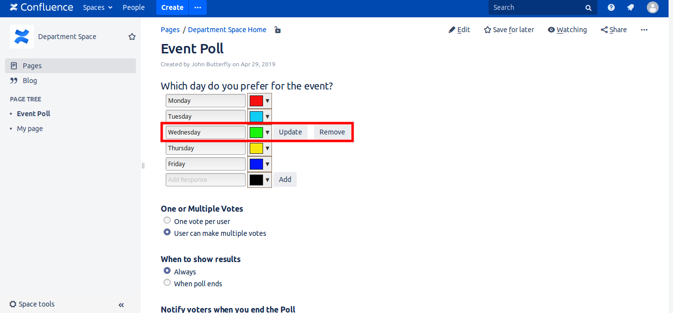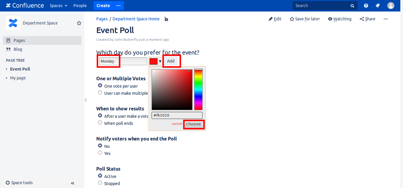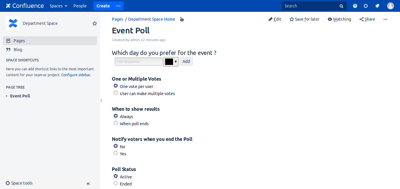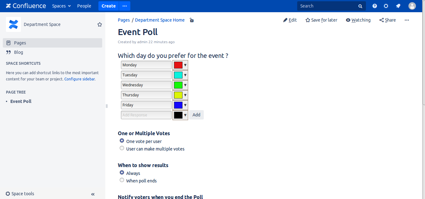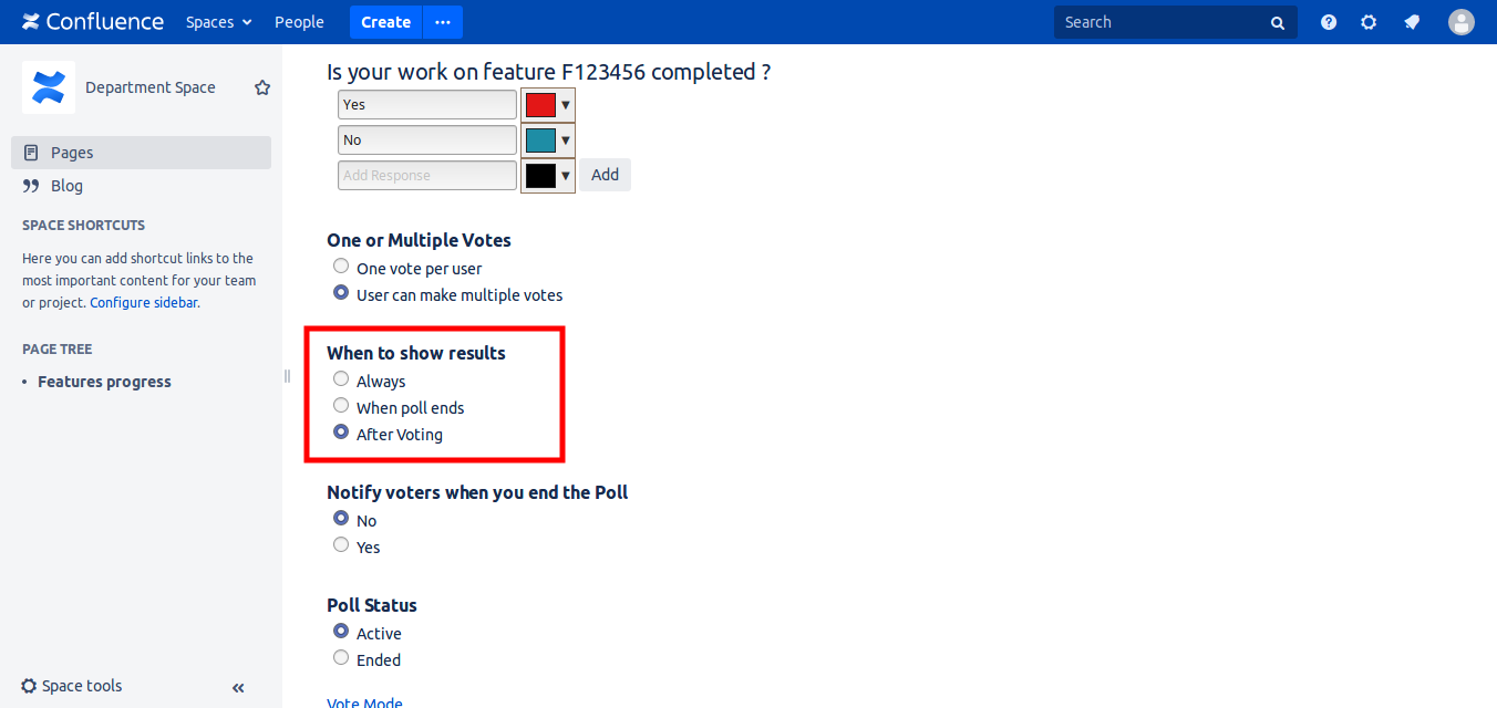 With 'Polls and Questions For Confluence' make nice and easy to use polls with many options.