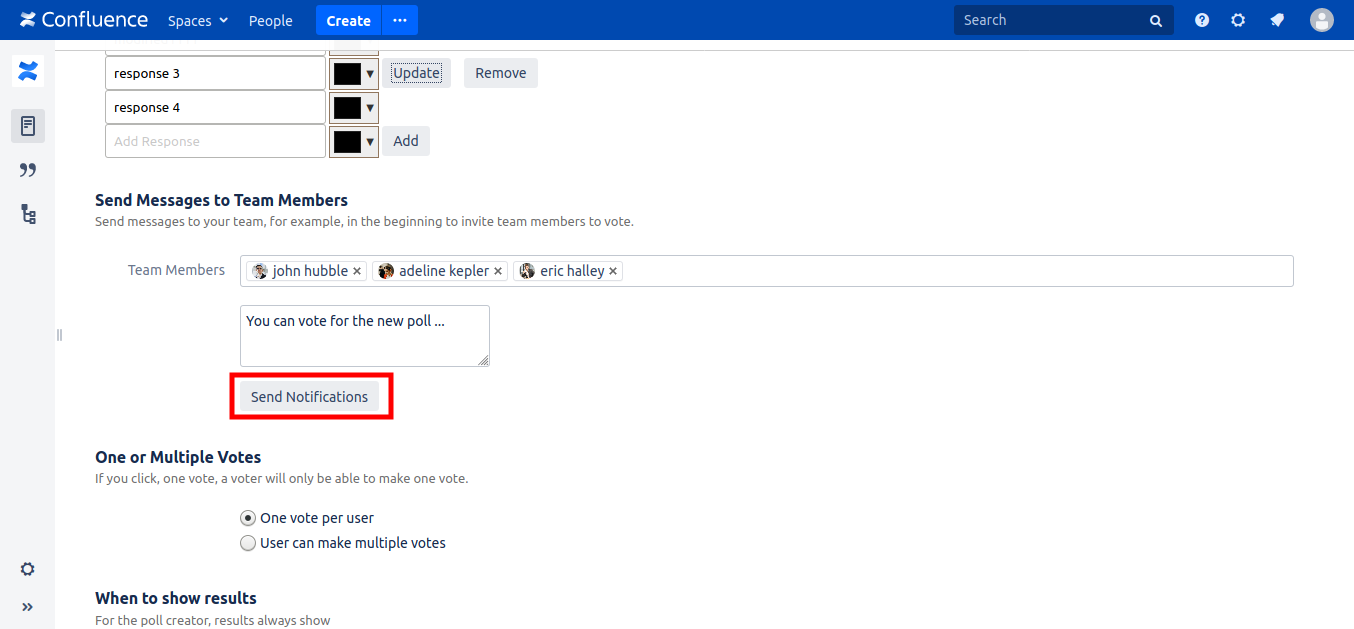 You can send messages to team members, to invite them to vote for example.