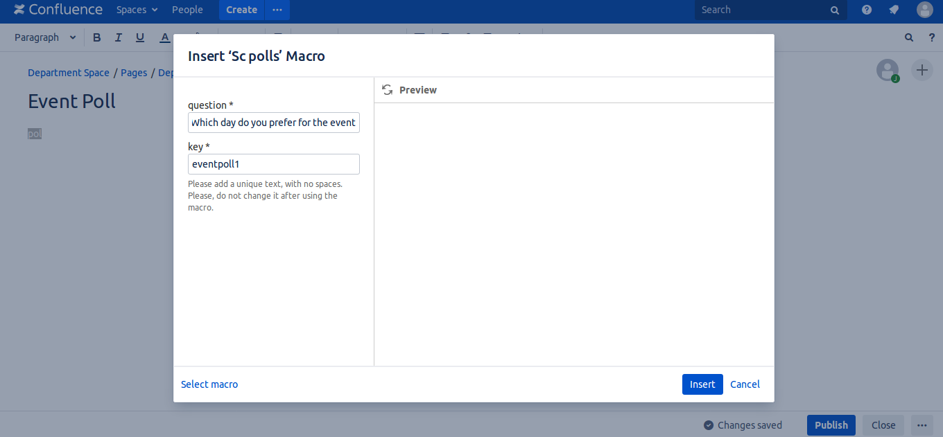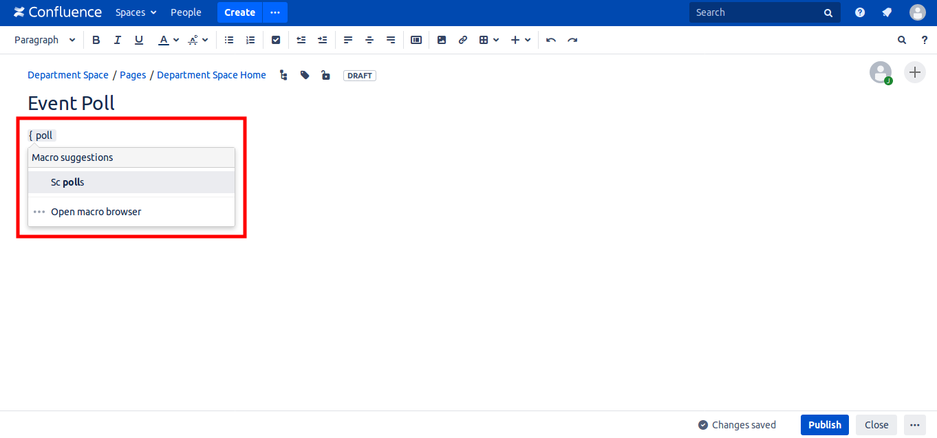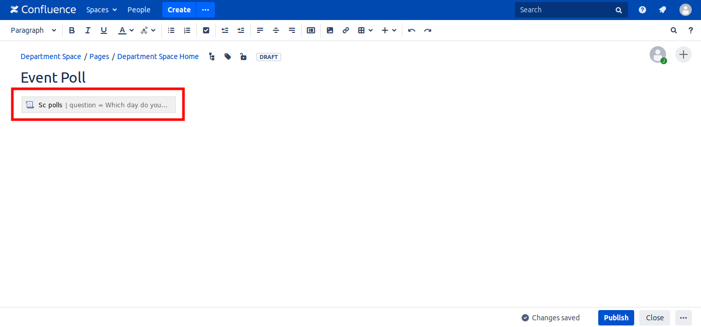 The macro appear in the page. Click 'Publish'